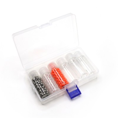 케이스규격 : 145 x 86mm / 높이35mm 통규격 : D 23.5 x68mm / 쇠구슬 약 110알 _ 유리구슬 약 110알 플라스틱구슬 약 110알 _ 빈통